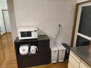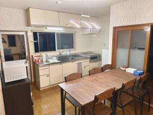 Prázdninový dům 波の音が聞こえる広々別荘エレクトリックハウス白老駅徒歩圏内 má 1 ložnici, TV s plochou obrazovkou a kuchyň.