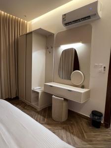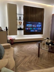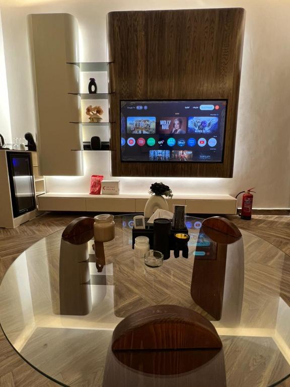 Klimatyzowany apartament شقه فاخره تتكون من غرفه وصاله posiada sypialnię i telewizor.