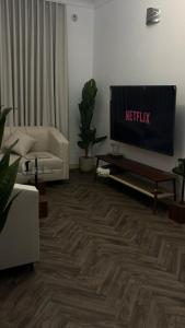 L'appartement climatisé du منازل سمو comporte une chambre, une télévision à écran plat et une cuisine.