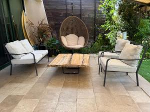 This holiday home boasts a private pool and a sauna. The holiday home's kitchen is available for cooking and storing food. The spacious holiday home offers air conditioning, a washing machine, a minibar as well as a terrace with garden views. The unit offers 7 beds.