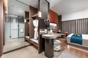 Featuring free toiletries and bathrobes, this double room includes a private bathroom with a walk-in shower, a hairdryer and slippers. The air-conditioned double room features a flat-screen TV, a washing machine, soundproof walls, a tea and coffee maker as well as city views. The unit has 1 bed.