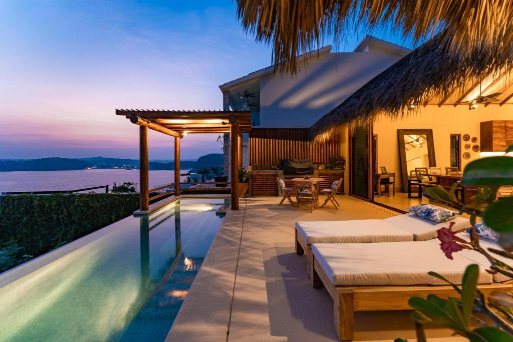 Guests will have a special experience as this villa features a private pool. The air-conditioned villa features 3 bedrooms, 3 bathrooms with a shower and a kitchen. Guests will find a stovetop, a refrigerator, a dishwasher and kitchenware in the kitchen. The villa also has a barbecue. Featuring a balcony with sea views, this villa also offers a tea and coffee maker and a TV with cable channels. The unit offers 3 beds.
