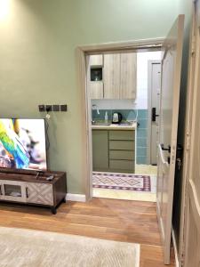 Klimatizovaný apartmán المسكن الزاهي حي الامير فواز tvoří 1 ložnice, obývací pokoj, plně vybavená kuchyň a 1 koupelnu. Apartmán má také koupelnu.