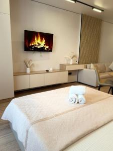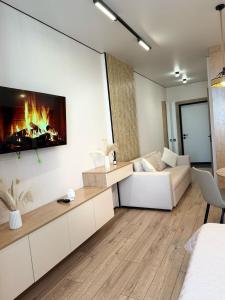 Klimatyzowany apartament Барыс Арена Апартаменты Люксы z 1 sypialnią posiada również salon. W obiekcie znajduje się telewizor z płaskim ekranem.