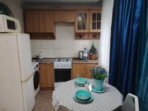 Die klimatisierte Ferienwohnung im Консульство РФ, ЖД вокзал по Назарбаева bietet Zugang zu einem Balkon, 1 Schlafzimmer und eine voll ausgestattete Küche. Es gibt einen Flachbild-TV.