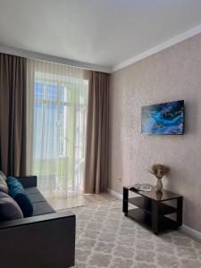 Apartmán Уютная квартира в центре города poskytuje balkon, 1 ložnici, obývací prostor a dobře vybavenou kuchyň.