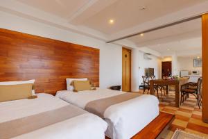 Boasting a private entrance, this air-conditioned suite features 1 living room, 1 separate bedroom and 1 bathroom with a bath and a shower. The well-equipped kitchen has a stovetop, a refrigerator, kitchenware and a microwave. The spacious suite features a flat-screen TV with satellite channels, a washing machine, soundproof walls, a dining area as well as sea views. The unit has 3 beds.