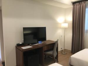 The quadruple room includes a private bathroom, well-fitted with a bath, a shower, a hairdryer and slippers. The air-conditioned quadruple room offers a flat-screen TV with cable channels, a wardrobe, an electric kettle, parquet floors as well as city views. The unit has 3 beds.