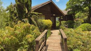 Luxury wooden chalet with living room, home cinema system, hot tub and a large patio.