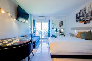 Questo monolocale dispone di aria condizionata, stoviglie e cucina.