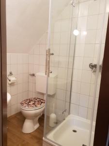 The double room provides a seating area and a wardrobe, as well as a private bathroom featuring a shower. This double room features a carpeted floor, heating and a TV. V této ubytovací jednotce je k dispozici 1 postel.