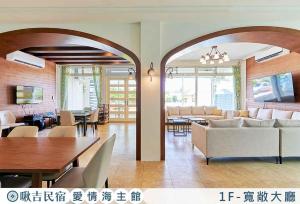 The air-conditioned homestay consists of 17 separate bedrooms, 16 bathrooms with slippers and a hair dryer, and a living room. Towels and bed linen are provided in the homestay at the property. This soundproof homestay at 啾吉民宿愛情海館 壯圍20到40人包棟民宿 is non-smoking.