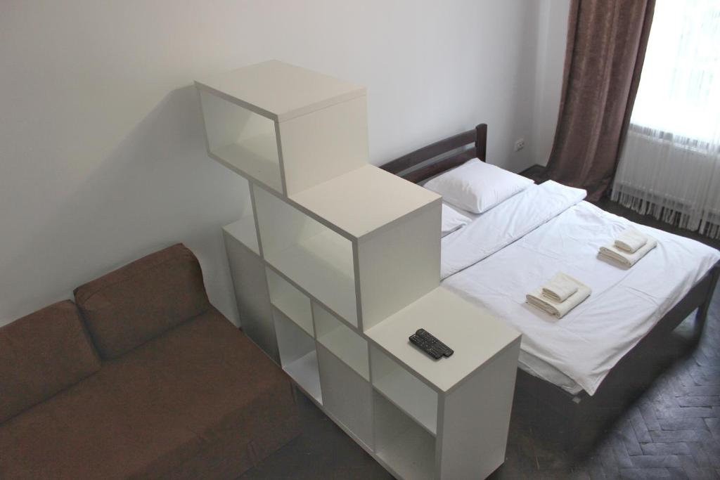 Apartmán Квартира по вулиці Голубовича 42 біля вокзалу комфортна повноцінна стильна zahrnuje 1 ložnici, plně vybavenou kuchyň s lednicí a mikrovlnnou troubou a 1 koupelnu se sprchou. Ubytování ubytování zahrnuje koupelnu s fénem.
