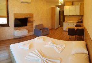 Guests will have a special experience as this apartment provides a private pool. The air-conditioned apartment has 1 bedroom, 1 bathroom, a kitchen and a seating area. Meals can be prepared in the well-fitted kitchen, which is fitted with a stovetop, a refrigerator and kitchenware. Boasting a terrace with sea views, this apartment also offers a dining area and a flat-screen TV with cable channels. The unit has 1 bed and 1 futon.