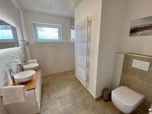Das 1630 - Haus Am Kurpark umfasst zwei Schlafzimmer, eine Küche mit Kühlschrank und Geschirrspüler sowie ein Bad mit Dusche, Haartrockner und Waschmaschine. Es gibt einen Flachbild-TV.