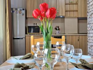 In the well-fitted kitchen, guests will find a stovetop, a refrigerator, kitchenware and an oven. The spacious air-conditioned apartment offers a flat-screen TV with cable channels, a washing machine, a tea and coffee maker, a dining area as well as city views. The unit has 3 beds.