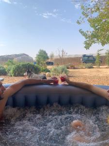 This tent's special features are the hot tub and the spa bath. Guests will find a stovetop, a refrigerator, kitchenware and an oven in the fully equipped kitchen. The tent also provides guests with a barbecue. This air-conditioned tent includes a flat-screen TV with streaming services, a private bathroom as well as a terrace with garden views. The unit offers 20 futons.