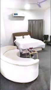 This spacious apartment is comprised of 1 living room, 1 separate bedroom and 2 bathrooms with a walk-in shower and free toiletries. Meals can be prepared in the well-fitted kitchen, which is fitted with a stovetop, a refrigerator and kitchenware. The air-conditioned apartment offers a flat-screen TV with cable channels, a washing machine, soundproof walls, a tea and coffee maker as well as a quiet street view. The unit offers 1 bed.