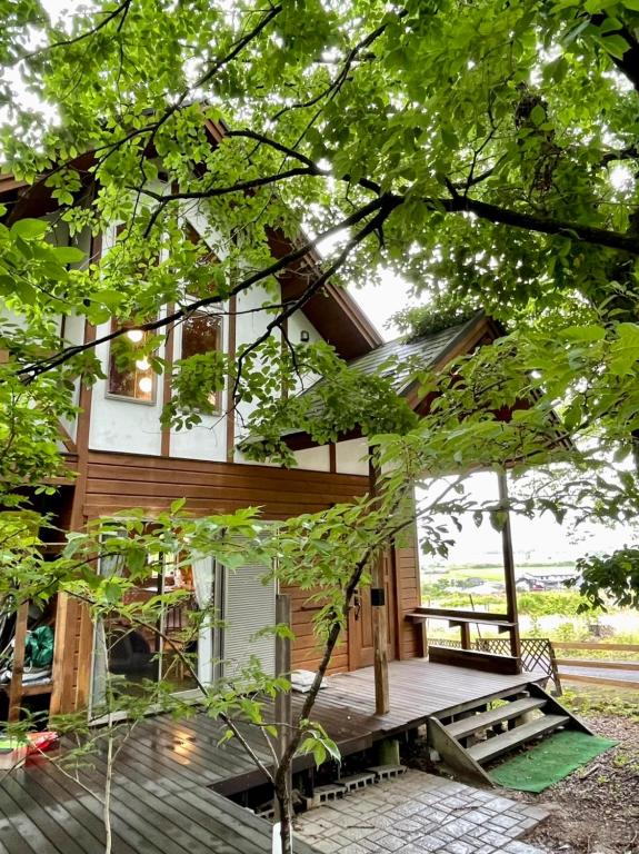 The air-conditioned holiday home features 1 bedroom and 1 bathroom with a bath and a shower. The fully equipped kitchen has a stovetop, a refrigerator, kitchenware and an oven. The holiday home provides a washing machine, tatami, a dining area, a flat-screen TV, as well as garden views. The unit offers 2 beds and 6 futons.