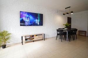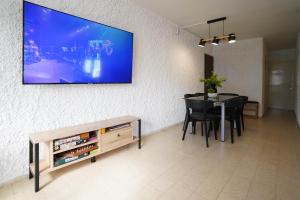 This spacious apartment features 1 living room, 3 separate bedrooms and 1 bathroom with a shower. Guests can make meals in the kitchen that features a stovetop, a refrigerator, kitchenware and an oven. The air-conditioned apartment features a flat-screen TV with streaming services, a washing machine, a tea and coffee maker, a dining area as well as mountain views. The unit has 6 beds.