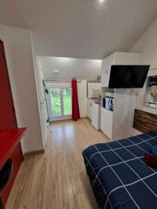 This apartment is comprised of 1 bedroom, kitchenette and 1 bathroom with a shower. Guests can make meals in the kitchenette that is fitted with a stovetop, a refrigerator, kitchenware and a microwave. The apartment offers a flat-screen TV, a dining area, a wardrobe, a dressing room as well as garden views. The unit offers 1 bed.