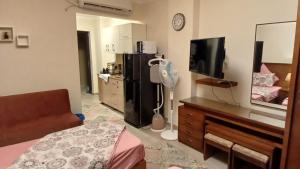 This studio offers a pool with a view. The studio provides air conditioning, a washing machine, as well as a private bathroom featuring a walk-in shower and a bath. The well-equipped kitchenette features a stovetop, a refrigerator, kitchenware and a microwave. The studio features a flat-screen TV, soundproof walls, a dining area, a wardrobe as well as garden views. V této ubytovací jednotce je k dispozici 3 postele.