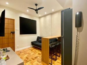 PF12 - Studio a 1 minuto da praia de Copacabana dispone di aria condizionata, 1 camera da letto, soggiorno, cucina attrezzata e bagno con set di cortesia. PF12 - Studio a 1 minuto da praia de Copacabana fornisce lenzuola e asciugamani ai propri ospiti.