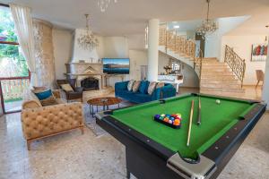 The pool with a view and fireplace are the special features of this villa. Boasting a private entrance, this air-conditioned villa includes 1 living room, 4 separate bedrooms and 4 bathrooms with a bath and a shower. Guests will find a stovetop, a refrigerator, a dishwasher and an oven in the well-fitted kitchen. The villa also features a barbecue. The spacious villa offers a flat-screen TV with streaming services, a washing machine, a minibar, a tea and coffee maker as well as garden views. The unit has 6 beds.