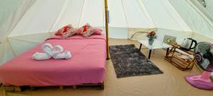 Handtücher und Bettwäsche werden im เขาเจ้าขา2 กระโจม bereitgestellt.