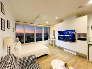 This air-conditioned suite comes with 1 living room, 1 separate bedroom and 1 bathroom with a shower. This suite features a sofa, a flat-screen TV with streaming services and sea views. V této ubytovací jednotce se nachází 1 postel.
