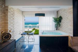 Guests will have a special experience as this apartment offers a hot tub and a spa bath. This apartment features 1 living room, 1 separate bedroom and 1 bathroom with a shower and free toiletries. The well-equipped kitchen has a stovetop, a refrigerator, kitchenware and a microwave. Boasting a balcony with sea views, this apartment also features air conditioning and a flat-screen TV with cable channels. The unit has 2 beds.