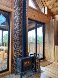 This holiday home's standout feature is the fireplace. Boasting a private entrance, this holiday home includes 1 living room, 1 separate bedroom and 1 bathroom with a shower and a hairdryer. Guests will find a stovetop, a refrigerator, kitchenware and an electric kettle in the fully equipped kitchenette. The holiday home also features a barbecue. The holiday home has a seating area, a wardrobe, a sofa as well as a terrace with garden views. The unit has 2 beds.
