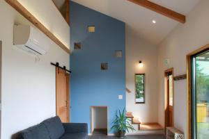 En el alojamiento, la casa cuenta con aire acondicionado, 2 dormitorios, sala de estar, cocina completa con nevera y cafetera, y baño con ducha y artículos de aseo gratuitos. La casa o chalet ワンちゃんと泊まれるコテージ 西野納屋 proporciona toallas y ropa de cama.