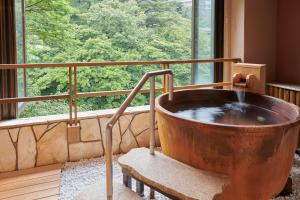 This double room's special features are the hot tub and the private open-air bath. The double room includes a private bathroom, well-fitted with a bath, a shower, a bidet, a hairdryer and slippers. The spacious air-conditioned double room provides a flat-screen TV with streaming services, tatami, a private entrance, a minibar as well as river views. The unit offers 1 bed and 2 futons.