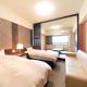 Cosy rooms have a sofa, a TV and a Japanese-style area with a tatami (woven-straw) floor and a low table with seating cushions. They’re fitted with a fridge and an en suite bathroom, while toiletries and yukata robes are provided.