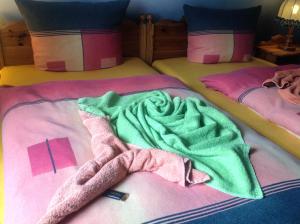 The hotel has several double rooms and apartments, a triple room, a breakfast room and a small leisure/party room. The hotel rooms are individually, comfortably and partly themed. The facilities include a flat-screen TV with cable connection, free WiFi and a separate bathroom with shower and toilet. Additional facilities in the apartments include a small kitchen and a balcony with a view of the Uffe. Extra beds are sometimes possible (by prior arrangement). The access road is on the right-hand side of the building (no driveway), here you will find the hotel entrance (with bell) and the terrace with smoking area. Free parking is available in the adjacent public streets, reservations are not possible for this. Motorcyclists can park their vehicles at the front of the building or at the back/garage entrance behind the building (arrangement required). A limited number of bicycles can be parked there (arrangement required). Shuttle service to and from Bad Sachsa train station is available at times.