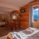 The rooms at Hôtel Arbois Bettex are decorated in a chalet style and include a flat-screen TV. Each one also provides a private bathroom with a bath.