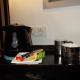 The buffet breakfast is available daily and includes tea, coffee, hot chocolate, fruit, bread, French pastries, cheese, ham, fruit juices, yogurts and eggs.