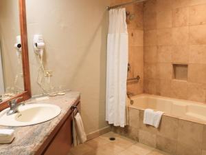 This stylish air-conditioned junior suite has a furnished balcony with sea views, a bedroom with flat-screen cable TV and a separate living-dining area with another flat-screen TV. A microwave, fridge, coffee maker and free bottled water are provided, while the bathroom includes a hairdryer and toiletries.