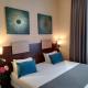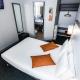 The soundproofed guest rooms are contemporary in style and décor. They are all equipped with en suite facilities, air conditioning and a flat-screen TV.