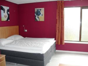 Spacious room with a small fridge.