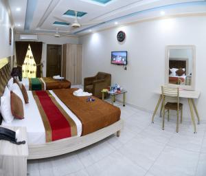 Presso questo hotel, tutte le camere sono dotate di aria condizionata, scrivania, terrazza con vista sulla città, bagno privato, TV a schermo piatto, lenzuola e asciugamani. Tutte le camere di Hotel Deluxe Lahore dispongono di cassaforte.