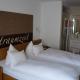 This family room is comprised of a flat-screen TV with cable channels, a private bathroom as well as a balcony with garden views. The unit has 2 beds.