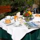 Guests can enjoy the on-site restaurant or relax with a drink in the guest garden in nice weather after a busy day.