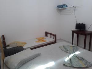 This bright room features a TV, fan and private bathroom.