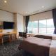 Comfortable rooms feature a tatami (woven-straw) floor and sliding shoji paper screens to a seating area at a floor-to-ceiling window. Amenities include an LCD TV, a fridge and a personal safe. An attached bathroom and yukata robes are provided. Guests sleep in traditional futon bedding on the tatami floor.