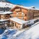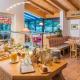 Útulné dřevem obložené interiéry zahrnují bar a jídelnu s tradičními keramickými kamny, kde se denně podává snídaně zahrnující místní maso a sýry. Hosté si mohou objednat polopenzi a najíst se v partnerském hotelu, který je jen pár kroků od hotelu.