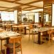 The restaurant offers buffet meals and themed dishes. There is a permanent bar indoors, and an outdoor bar in summer.