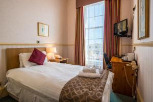 Cette chambre double comprend un plateau/bouilloire, une armoire ainsi qu’une salle de bains privative avec une baignoire ou une douche et un sèche-cheveux. Revêtue de moquette, cette chambre double est dotée du chauffage et d’une télévision à écran plat. Le logement comporte 1 lit.