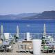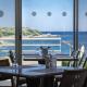 Das Restaurant verfügt über raumhohe Fenster mit einer Terrasse mit Panoramablick auf den Strand. Das Frühstück wird jeden Morgen auf der Terrasse serviert.